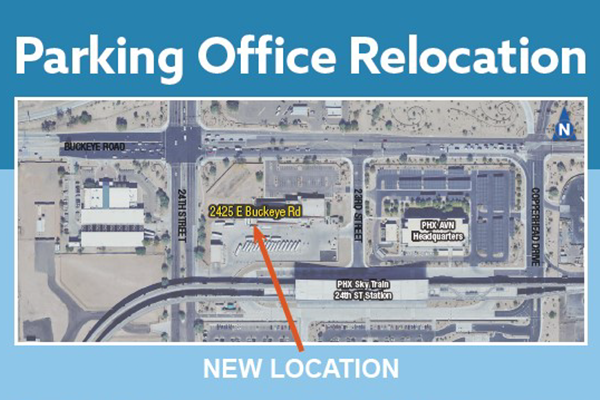 Read MoreThe parking office has been relocated to 2425 E Buckeye Rd. Visitors can take the PHX Sky Train® to the 24th Street Station for easy access.