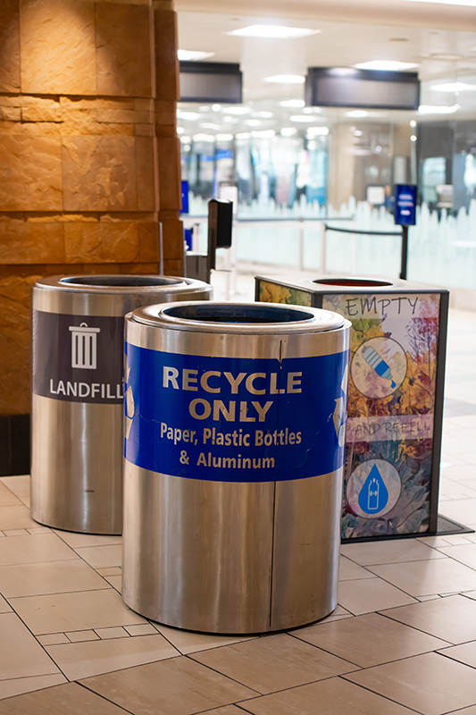 - Waste and Recycling—The Aviation Department plans to achieve Zero Waste by 2050 through aggressive efforts to reduce waste and minimize landfill trips. Inside the terminals, passengers can recycle in concourses, at security checkpoints, and in food court areas.
