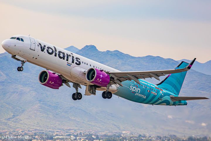 Just in time for spring, Volaris Airlines showcases its Spin Premia livery brightening the desert’s sky with vibrant colors.