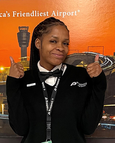Emily H., a passenger assistant with airport contractor Prospect International Airport Services, earned the admiration of traveler Anthony C.