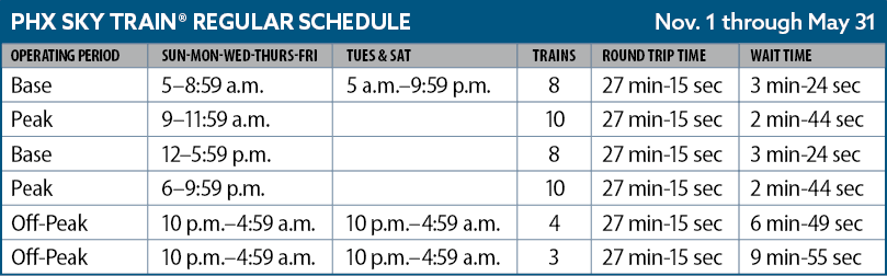 Regular Schedule for the PHX Sky Train® Through May 31, 2026